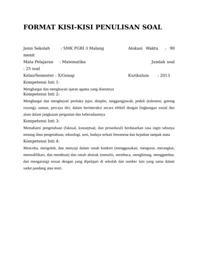 Format Kisi Kisi Soal : Doc Format Kisi Kisi Penulisan Soal Subardi Ssi Academia Edu / 30 days of free revision;